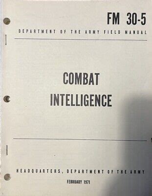 Read Online FM 30-5 Combat Intelligence. Paperback